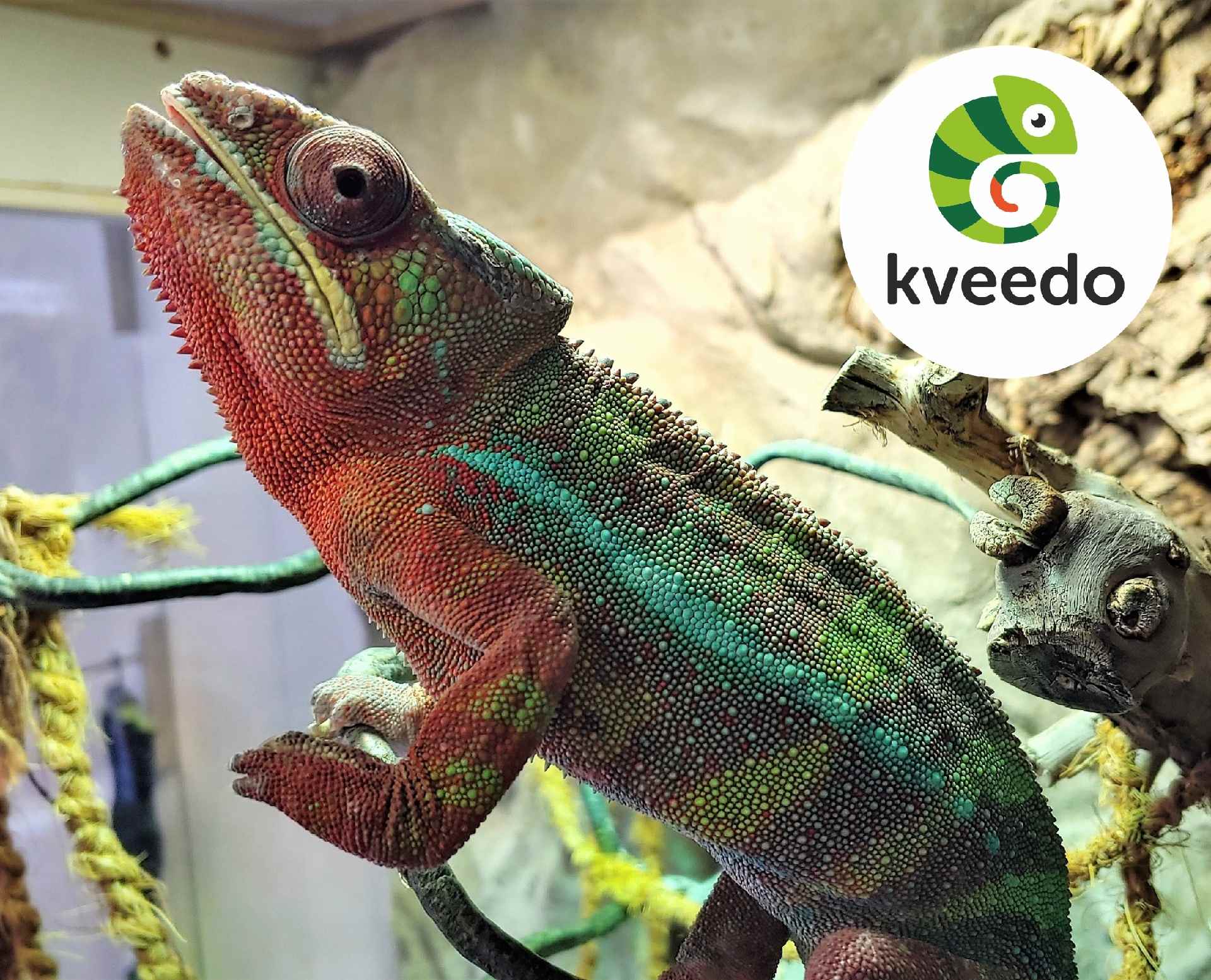 Kvido je jméno, které máme rádi. Inspirovala nás postava z knihy Báječná léta pod psa od Michala Viewegha, a protože jsme chtěli názvu dodat trochu světoběžnický nádech, nahradili jsme české „í“ anglickým „ee“. A tak vzniklo Kveedo. Mohlo by to být i jméno pro syna – ale jak s úsměvem říká můj muž: on umí jenom holky 🙂 . Kvído ale skutečně existoval – byl to náš chameleon pardálí, který se z našeho domova přestěhoval na prodejnu v Sadské a stal se jejím neodmyslitelným členem. Téměř tři roky s námi „hlídal“, vítal zákazníky a rozdával radost dětem – stal se maskotem našeho bosého dobrodružství a součástí loga. V létě 2022 nás Kvído opustil. Děkujeme mu za všechno – byl součástí nejen naší rodiny, ale i příběhu Kveedo a nejen našich dětí, co ho tak milovali.